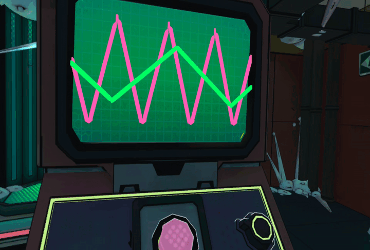 The Stunner: The AI system was coupled with environmental gameplay logic. To progress the fight, I implemented the "Berserker Stunner", an in-world machine featuring a 'waveform matching' puzzle. Successfully solving this objective broadcasts a stun event to the AI, transitioning the Berserker out of its invulnerable state and exposing its weak points for player damage.